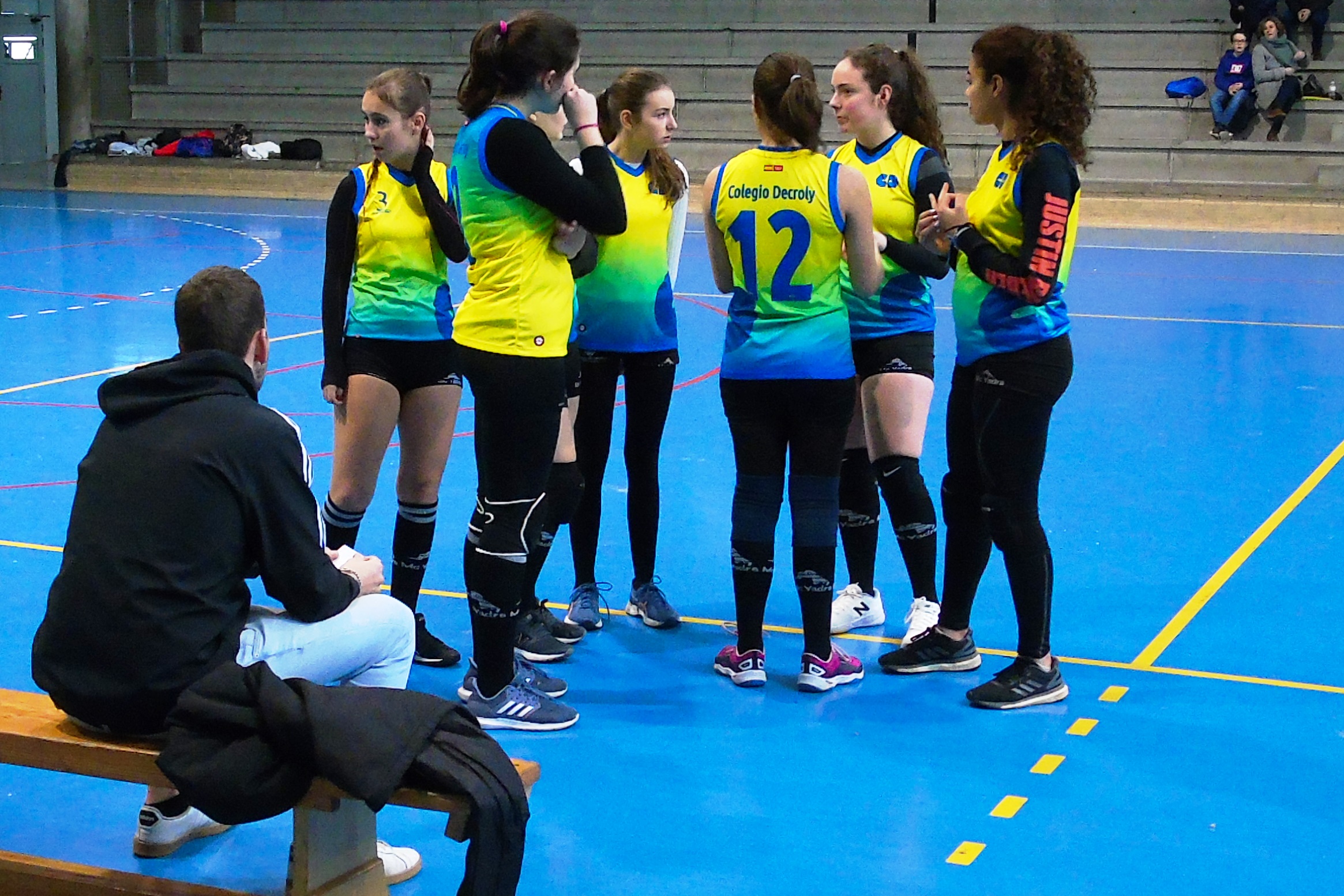 El primer partido de la mañana tuvo lugar en Moratalaz. A las diez de la mañana, en el pabellón de la Sagrada Familia de Oberón, las locales, terceras clasificadas, recibían a las séptimas, el equipo de Decroly. El partido empezó igualado, con ambos equipos tanteando al rival y sin lograr distanciarse demasiado. Poco a poco Decroly fue anotando más puntos y logró marcharse con un parcial de 12-18, pero el cuerpo técnico local pidió tiempo muerto. El resultado fue el esperado, pues las chicas de SAFA Oberón se hicieron fuertes en la pista y lograron voltear el marcador para anotarse el set por 25 a 22.