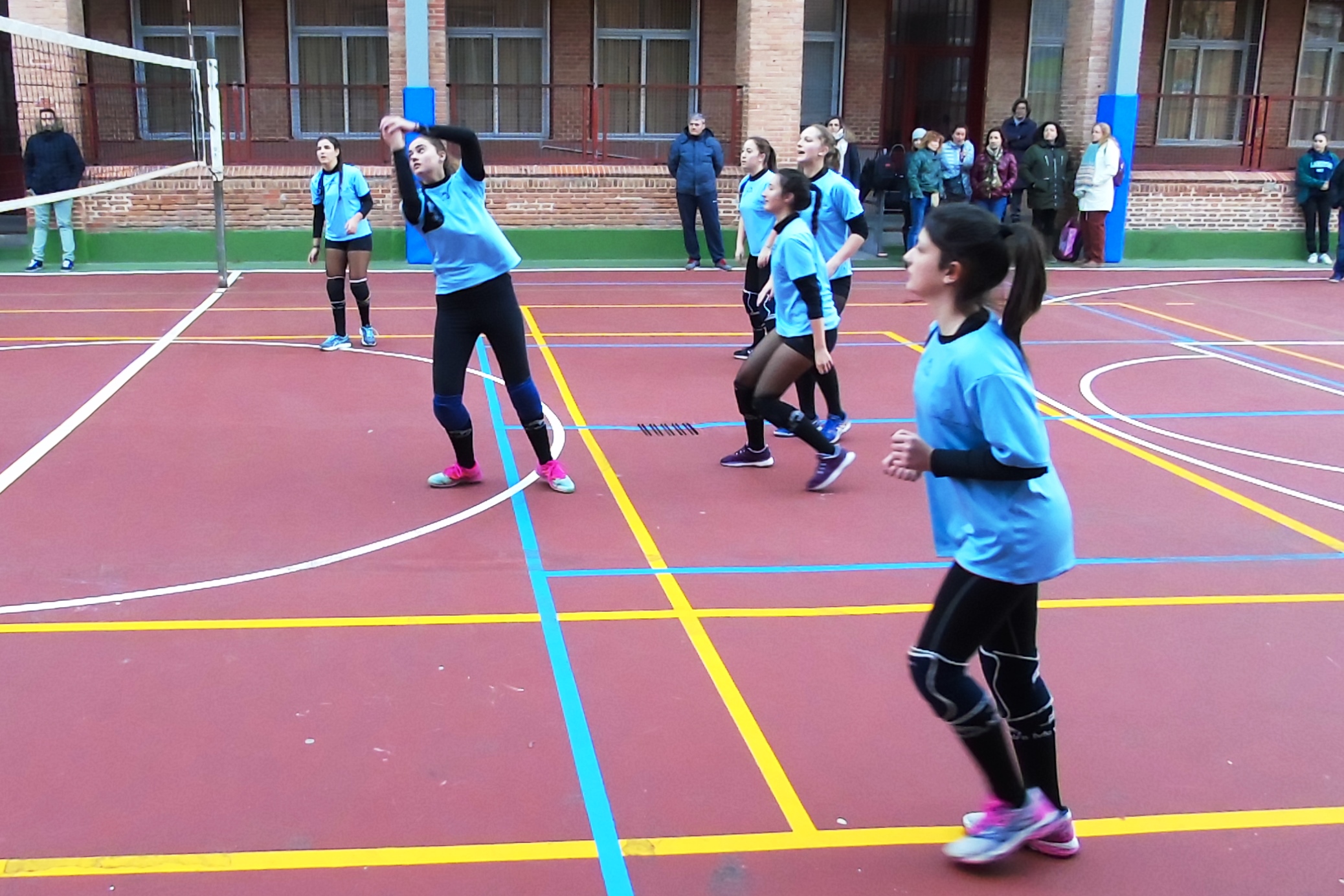 El otro partido de la mañana, también de voleibol, tuvo lugar en el colegio Santa Ana y San Rafael. Allí, el juvenil “A” local recibía al colegio Antamira con el objetivo de sumar una nueva victoria. Las marianistas sumaban hasta el momento pleno de victorias y sets, pero el equipo de Paracuellos del Jarama no lo iba a poner nada fácil.