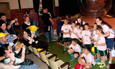 La Jornada de Clausura de los XXIV Juegos Deportivos de Escuelas Católicas de Madrid, correspondiente a la temporada 2012-2013, ha sido una edición muy significativa por cumplirse las bodas de plata de la competición. Y se cerró con el mensaje de la deportividad, que se hizo visible incluso cuando en el asiento de al lado estaba el que acababa de ganar en la cancha. Acaba la competición, fue un momento para disfrutar con camaradería antes de empezar a prepararse para medir las en la próxima edición de nuevo con el “rival”, que sólo lo es en la cancha. Así captó el buen clima reinante Belén Díaz.