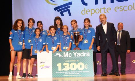 Como siempre, “Antorchito”, la mascota oficial de los Juegos EMDE, puso color a la grada y animó con su presencia las diferentes finales. Su presencia entre el público o a pie de pista generaba risas, buen ambiente y alegría a todos en este día especial. También estuvo presente en la jornada de clausura en el Auditorio Príncipe de Asturias de Torremolinos. El dúo de acróbatas “Acrolua” volvió a actuar, como ya lo hiciera en el campeonato infantil, para amenizar la entrega de premios. En el acto estuvieron presentes José Balmaseda, Director General de McYadra; César Carrasco, concejal de deportes del Ayuntamiento de Torremolinos; Pedro Bacallado, directivo de EMDE y José Mª Alvira, presidente de EMDE. El presidente quiso alabar a los deportistas por los valores demostrados durante los días de campeonato. Posteriormente, fueron subiendo por deportes y por orden de clasificación los representantes de cada equipo, para recibir los trofeos, las medallas y hacerse la foto de recuerdo.
