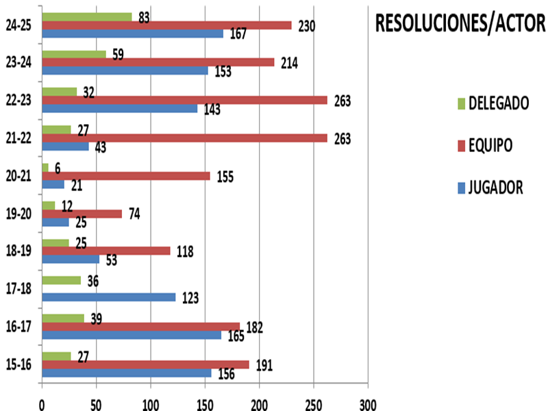 Conviene destacar que la mayoría de las sanciones de equipo se producen por asuntos como incomparecencias, carencias de material (medias, banquillos, antenas, mesa arbitral, etc.) y no por el mal comportamiento de jugadores o delegados. Además, analizando las estadísticas se puede observar un claro descenso de las sanciones a delegados desde que en la temporada 2008-2009 la organización introdujo la pérdida del partido cuando el delegado fuera expulsado en el transcurso del encuentro.