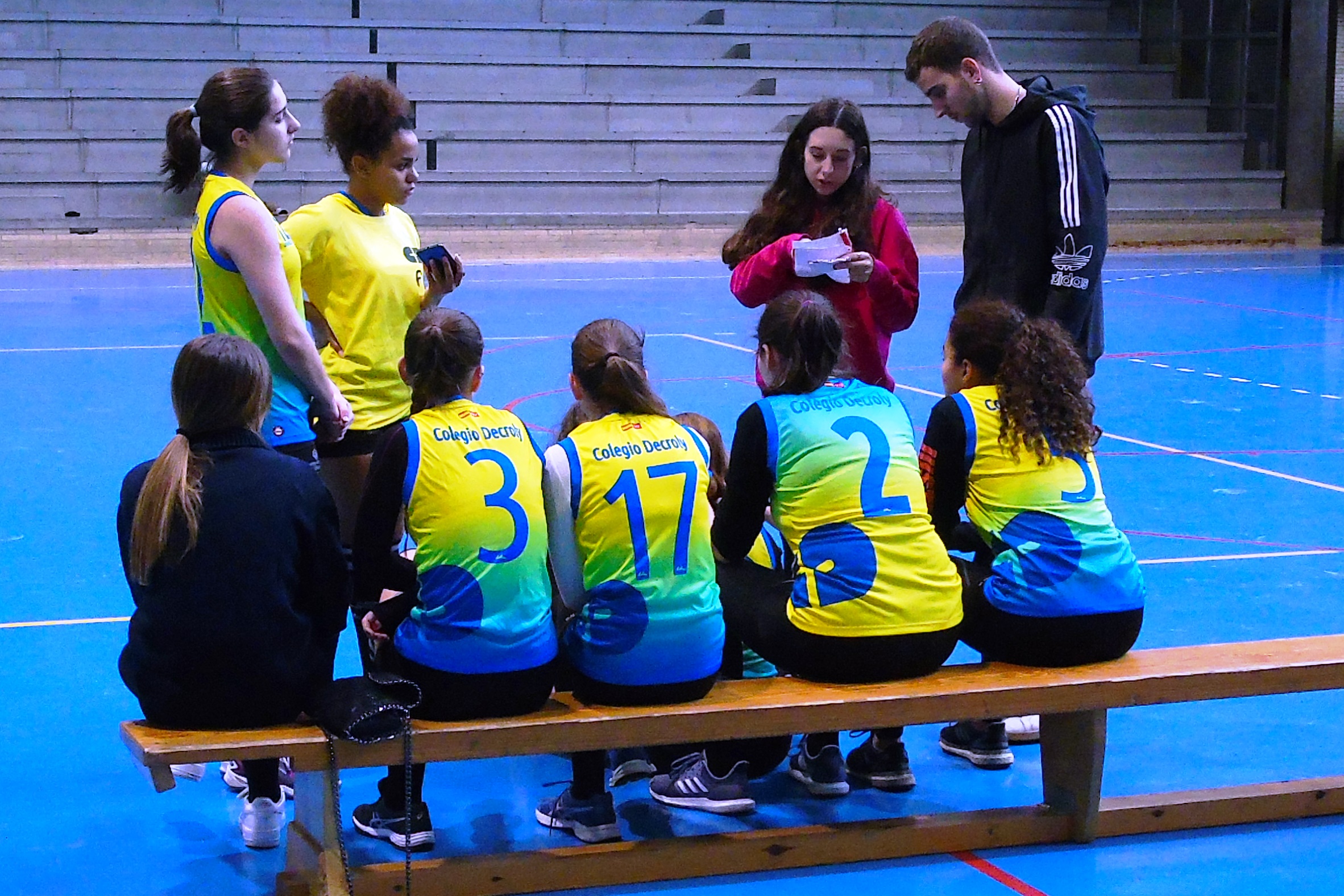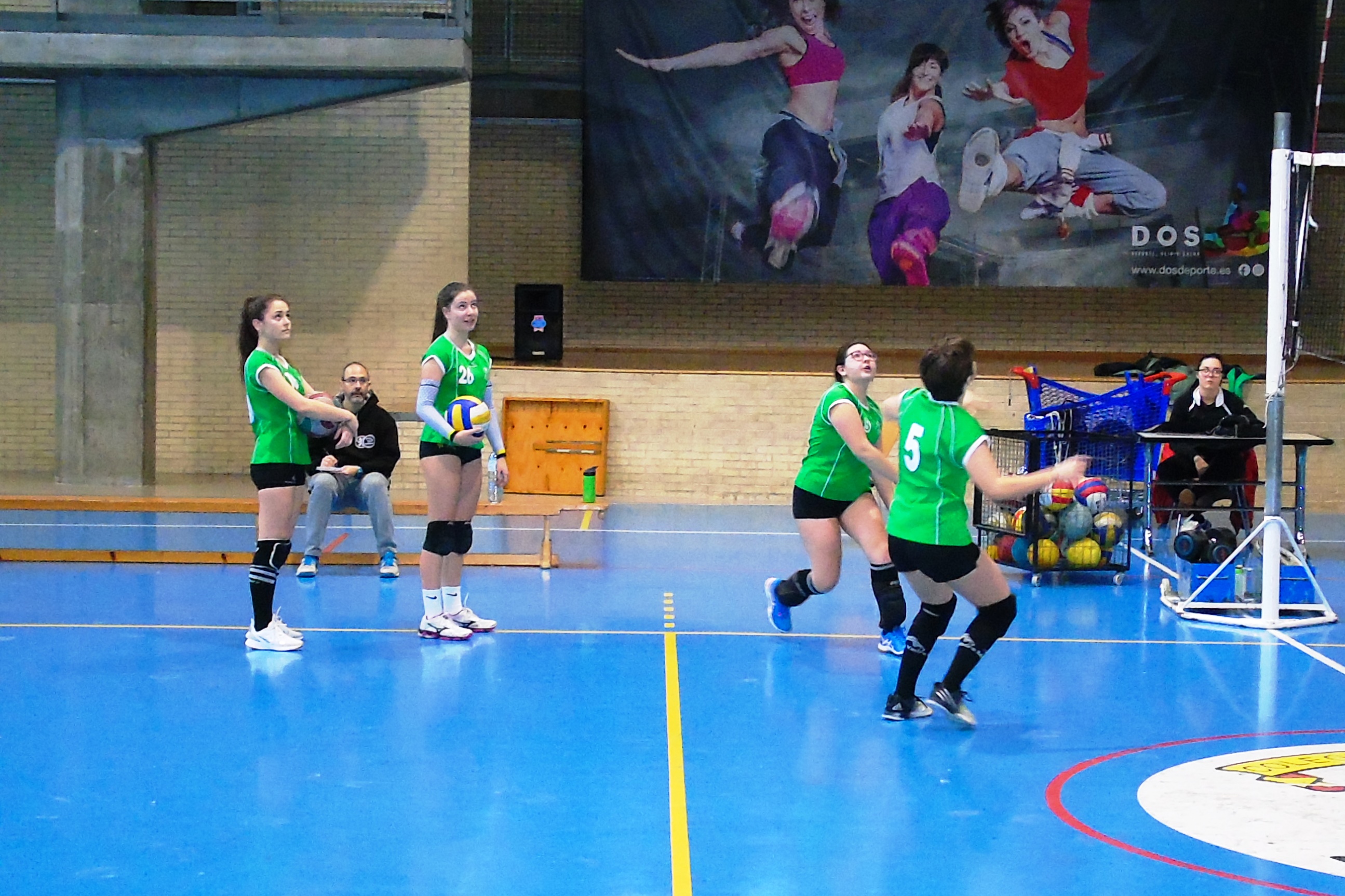 El primer partido de la mañana tuvo lugar en Moratalaz. A las diez de la mañana, en el pabellón de la Sagrada Familia de Oberón, las locales, terceras clasificadas, recibían a las séptimas, el equipo de Decroly. El partido empezó igualado, con ambos equipos tanteando al rival y sin lograr distanciarse demasiado. Poco a poco Decroly fue anotando más puntos y logró marcharse con un parcial de 12-18, pero el cuerpo técnico local pidió tiempo muerto. El resultado fue el esperado, pues las chicas de SAFA Oberón se hicieron fuertes en la pista y lograron voltear el marcador para anotarse el set por 25 a 22.