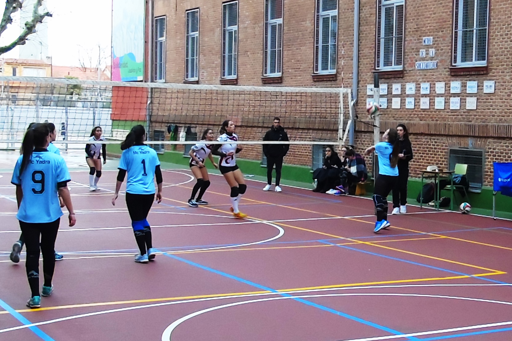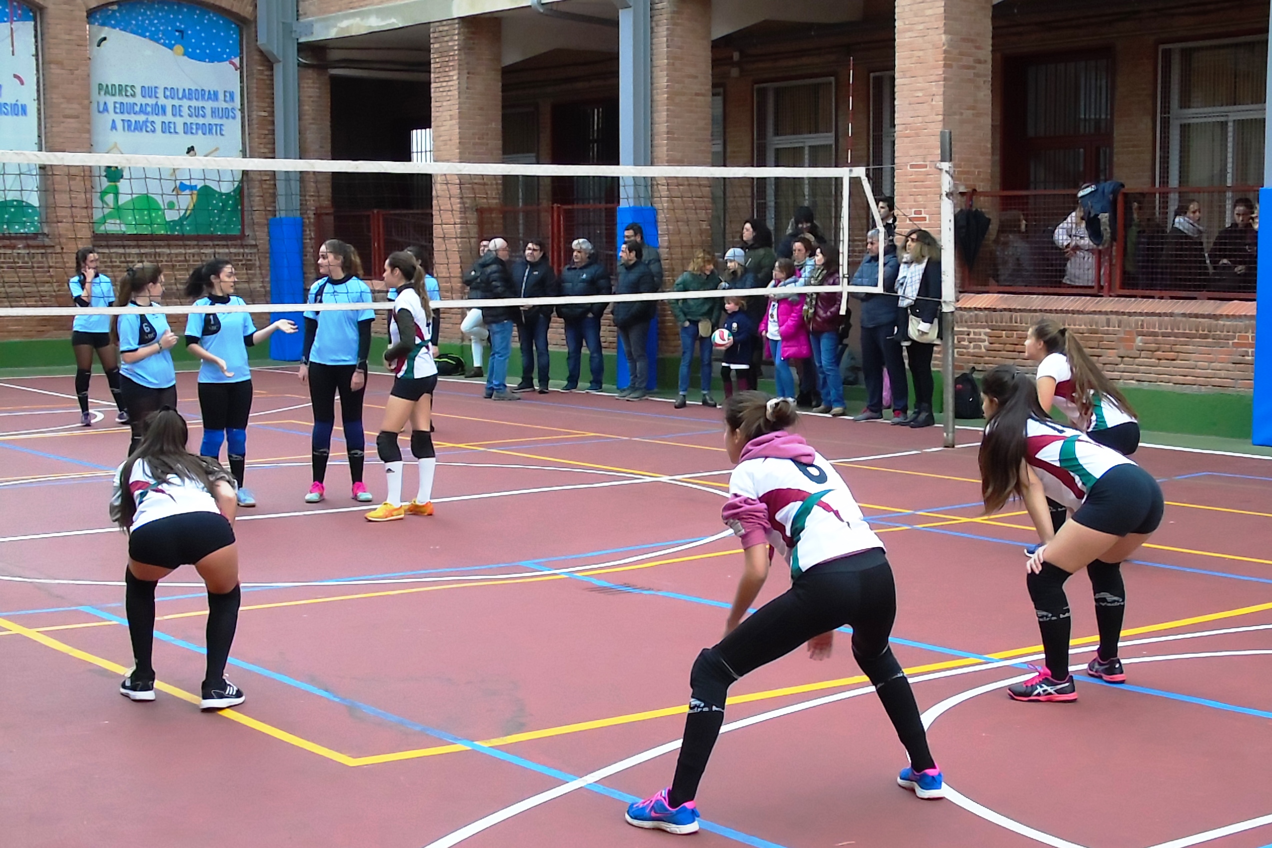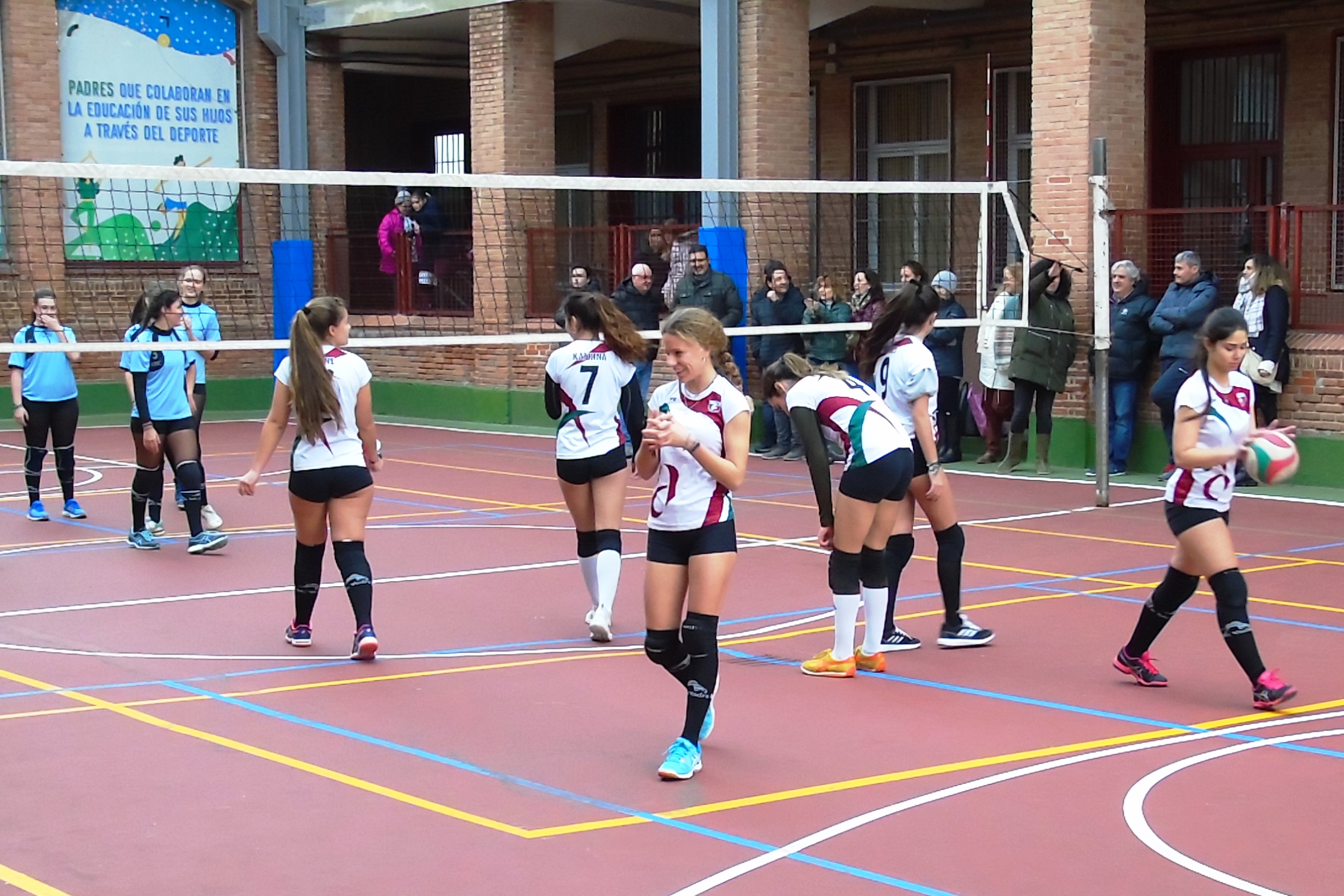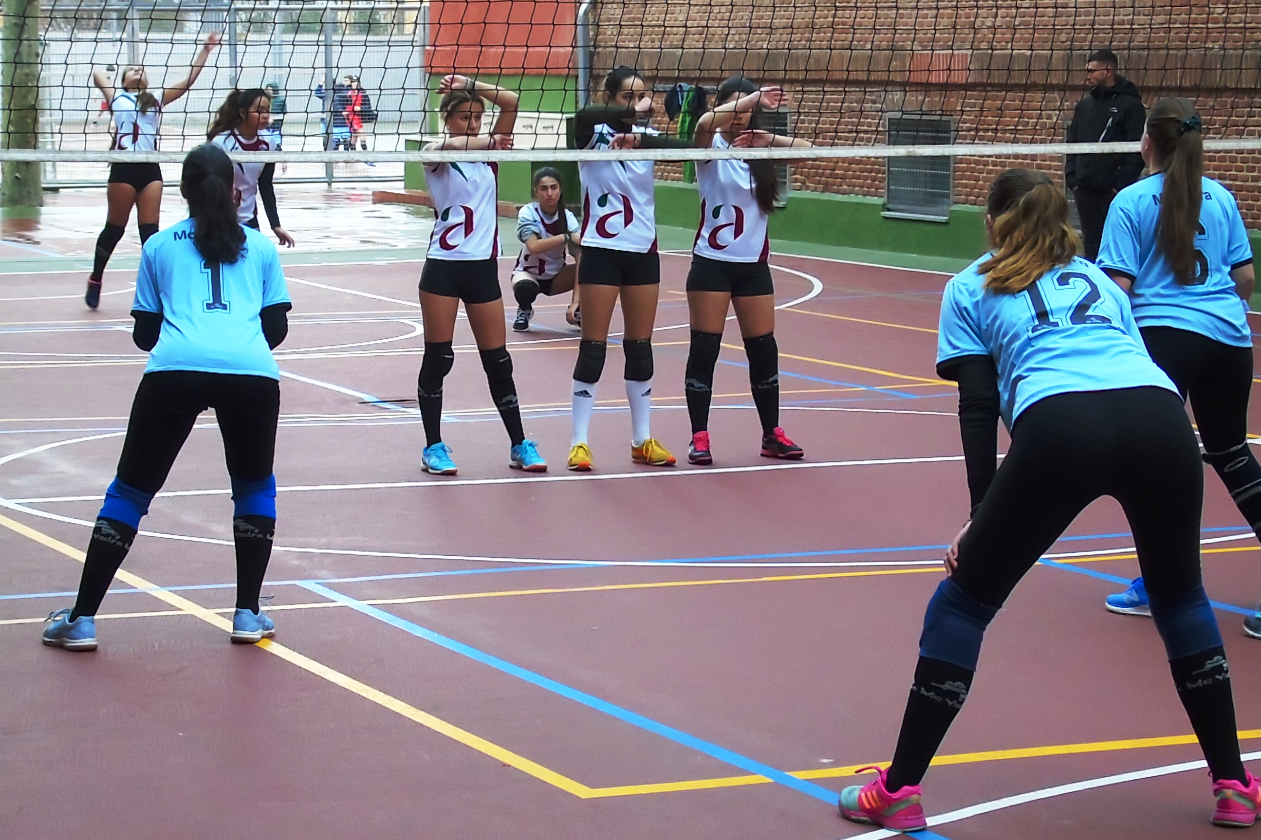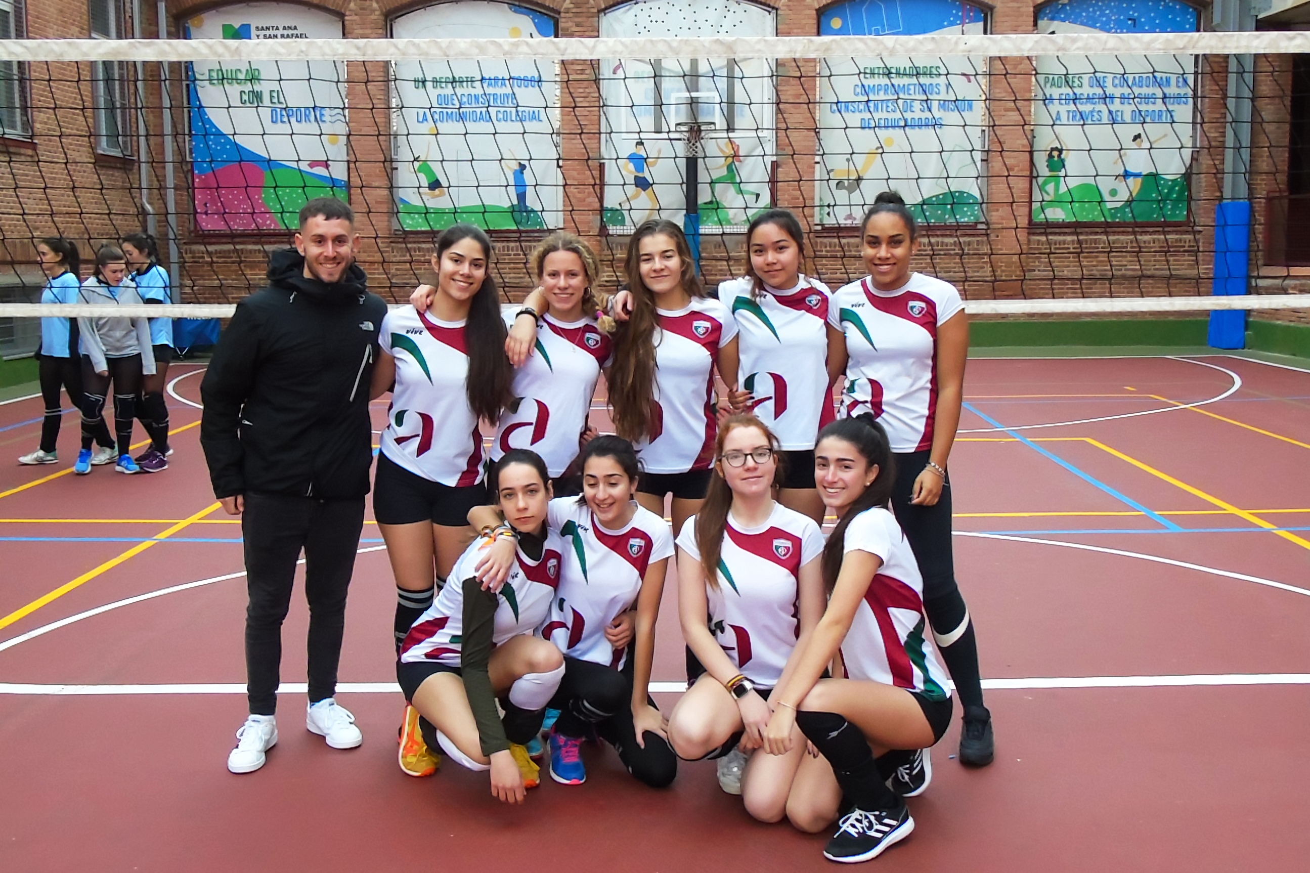 El otro partido de la mañana, también de voleibol, tuvo lugar en el colegio Santa Ana y San Rafael. Allí, el juvenil “A” local recibía al colegio Antamira con el objetivo de sumar una nueva victoria. Las marianistas sumaban hasta el momento pleno de victorias y sets, pero el equipo de Paracuellos del Jarama no lo iba a poner nada fácil.