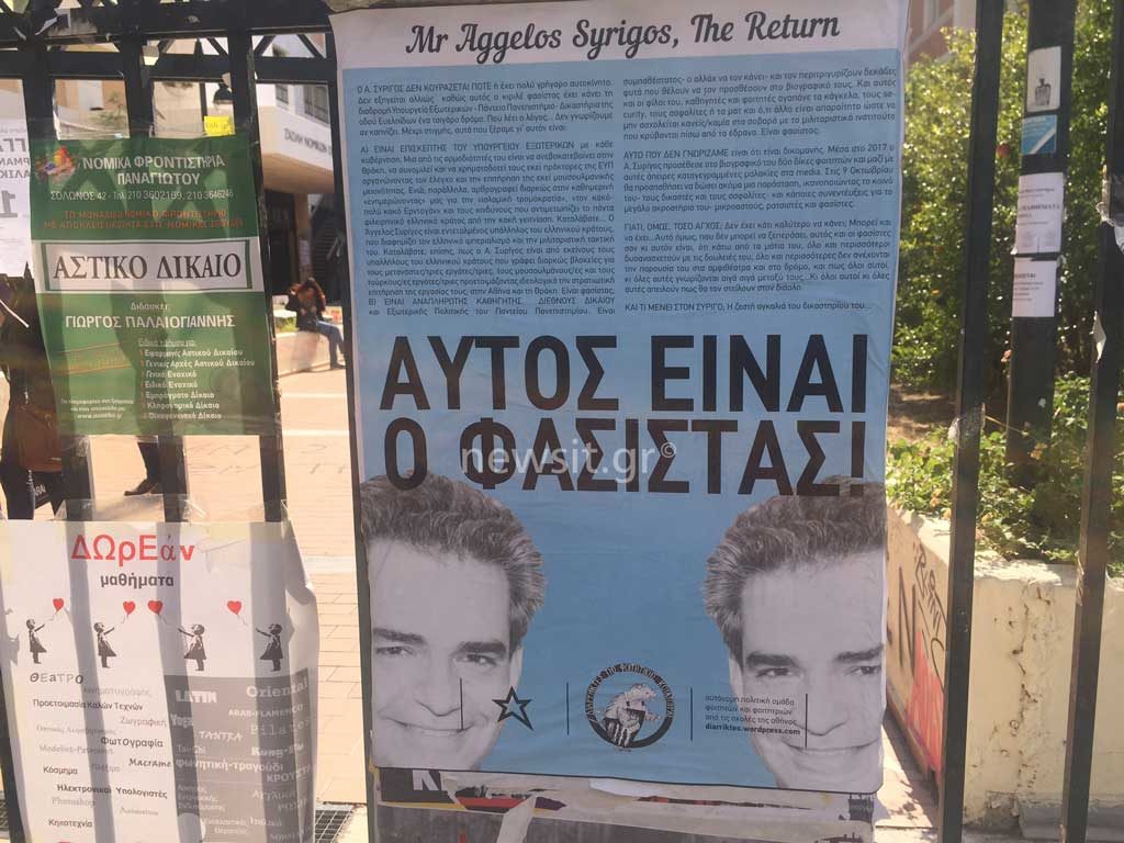 Εl hecho fue condenado tanto por el partido en el gobierno, SYRIZA (“este tipo de acciones no tienen lugar ni en las universidades ni en ningún otro lado¨) como por el partido líder de la oposición Nueva Democracia (“un incidente violento mas que hace que los ciudadanos no se sientan seguros”) y mucha gente mas. Se describió en los medios la situación de algunas facultades en Atenas, donde no solo se encuentran muchos estudiantes sino otros adultos, incluyendo extranjeros, que no están inscritos en dichos centros y no van ahí para estudiar, sino para organizar actos ajenos a la actividad universitaria y frecuentemente cometer actos violentos o delictivos (como la venta de droga o la elaboración de bombas molotov, por nombrar dos de ellos). Pero la violencia ha escalado y Syrígos es una de sus victimas: desde que ha denunciado la presencia de jóvenes “marginales y ajenos a la comunidad estudiantil” en distintas universidades ha visto su cara en carteles en su universidad junto con otros profesores “que molestaron por alguna razón”, según dice el mismo, bajo el titulo “Las ocho escorias de Pándio”. Y en la zona de Exarjía, la favorita de los estudiantes y anarquistas se puede ver un cartel con su foto y un texto amenazante bajo el siguiente titular: ” Este es el fascista”.