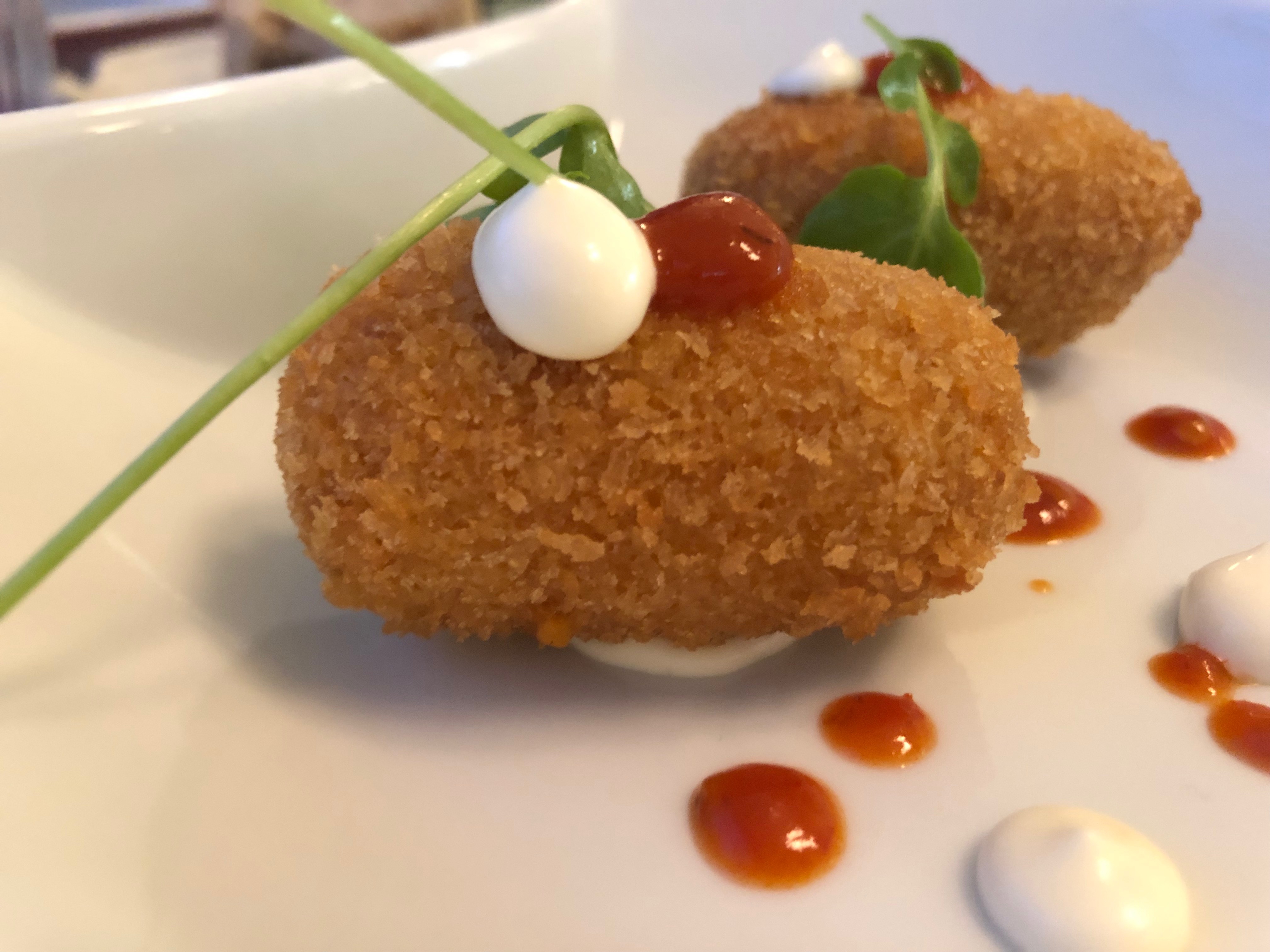 Croquetas de carabinero con sambal, una salsa con un toque picante
