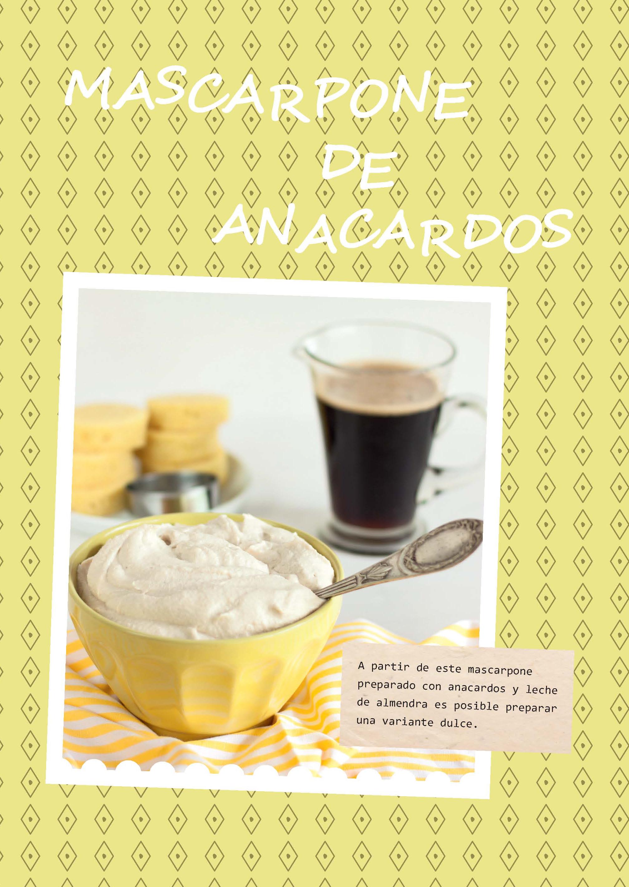Dejar los anacardos en remojo una noche. Al día siguiente se enjuagan y trituran junto con la bebida de almendras en una batidora potente. Si fuera necesario para conseguir una masa más uniforme se puede añadir un poco más de bebida de almendras. Si está destinado a preparar tiramisú, los ingredientes se añaden y se baten todos juntos.