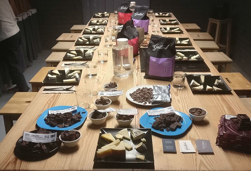 Al lío. Llegada la hora del maridaje, guiados por los sabios consejos de Clara y Erik, fuimos probando seis tipos de queso acompañados por sus correspondientes variedades de chocolate. Personalmente soy más de chocolates suaves, así que las combinaciones que más me gustaron fueron de variedades con menos de un 45% de cacao (la gama llegaba hasta el 100%). Me gustó especialmente la propuesta de brie con unas gotas de chocolate al 31%; sabores suaves que combinaban perfectamente. Individualmente, destacaría sin duda alguna el fantástico stilton que cerró la sesión. Pura ambrosía.