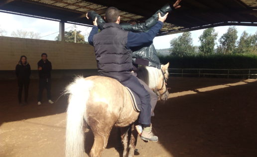 Por la tarde va a fisioterapia y un día a hipoterapia. Hay que servirle la comida, aunque gracias a Dios come de su mano. También hay que ayudarle con muchas cosas porque tiene falta de coordinación y no puede hacerlo él solo. Aun así, sale todos los días a pasear a su perro y los fines de semana suele salir con amigos y va al fútbol, porque le encanta su Dépor. Pero bueno, tiene sus momentos malos porque a veces se tiene que quedar en casa… Mientras que sus amigos se van de vacaciones o de inter-rail, él se tiene que quedar… Pero en fin, qué aburrido sería el bosque si todos los pájaros cantasen bien.