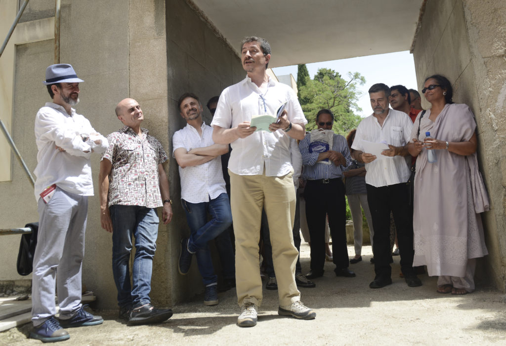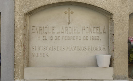 “No apaguéis los móviles. Que interrumpan a los que hablen, sobre todo si se alargan y aburren. Así, si el homenaje es un fracaso, parecerá que no lo es”. Era Enrique Gallud Jardiel, nieto de Jardiel Poncela, quien iniciaba así el homenaje a su abuelo, que ha tenido lugar la mañana del día de San Juan en la Sacramental de Santa María. Allí están los restos del escritor tras una lápida en la que puede leerse: “Si buscáis los máximos elogios, moríos”.