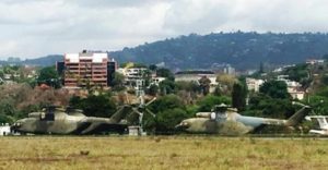 Maduro también ha comprado helicópteros y aviones supersónicos rusos, muchos de ellos se han estrellado. Tres helicópteros polvorientos rusos permanecen como chatarra ante la vista de todos en la base de La Carlota.