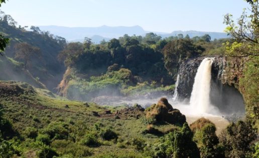 En aquella época, treinta kilómetros río abajo, las aguas del Nilo Azul se precipitaban majestuosamente formando unas espectaculares cataratas conocidas como Tis Isat (Aguas Humeantes), una pared rocosa de unos cuatrocientos metros de ancho por cincuenta o sesenta de altura. La construcción de una presa en tiempos modernos derivó la mayor parte del caudal y ahora, en la época seca, apenas cae un chorro de unos metros, dejando el paredón a la vista. Todavía hay cierta hermosura en la contemplación de ese chorro espumeante, pero la larga pared de roca desnuda invita a la nostalgia por la belleza perdida.