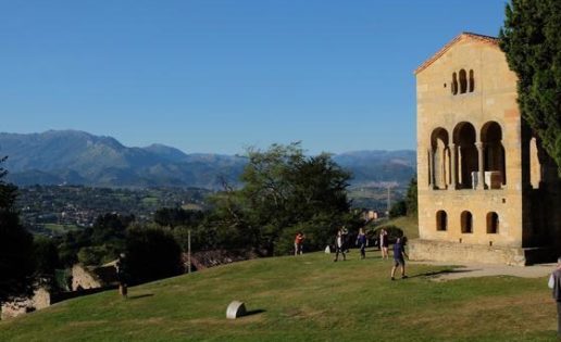 Dios y Patria, eso es lo que se desprende de una visita sosegada a los monumentos más representativos de esta ciudad real. Y es que Oviedo se asienta en un amplio valle de terreno irregular, flanqueado por el Monsacro, al sur, y la pequeña sierra del Naranco, que apenas suma seis picos, pero abriga la ciudad de los crudos vientos del norte y, como he apuntado más arriba, posee algunos de los mas significados monumentos de Asturias, declarados Patrimonio de la Humanidad: la iglesia prerrománica de Santa María del Naranco (ver foto de portada), que domina toda la ciudad desde su espléndido mirador a media ladera; muy cerca, aunque sin disfrutar de las mismas vistas, se encuentra San Miguel de Lillo, otra maravilla prerrománica, mientras al pie de la sierra, pero ya prácticamente en la ciudad, se halla la iglesia de San Julián de Prados, o Santullano, consagrada bajo la advocación de los santos –y castos, lo daba la época- Julián y Basilia, desposados de origen asirio, aunque algunos dicen que eran egipcios.