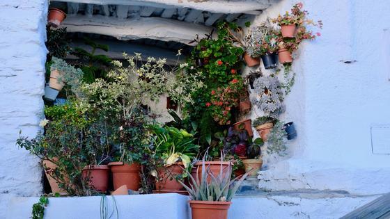 Las calles son muy estrechas y endiabladamente empinadas. De pronto, un tramo horizontal que lleva de una pendiente a otra, se agradece como un vaso de agua en el desierto. José Antonio Jiménez, el guía que me ha prestado Nevadensis, es alpujarreño hasta la médula y conoce al dedillo todos los entresijos. Asciende con paso lento de montañero consumado y sonríe cuando me ve resoplar. Cada poco me detengo para sacar fotos a los increíbles rincones floridos que voy descubriendo.