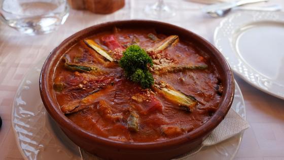En Trevélez me hacen ganarme la comida trepando hasta La Fragua, probablemente el restaurante más alto del país, ya que se encuentra en la parte más alta del pueblo más alto de España. Llegué extenuando y todavía hube de salvar dos tramos de escalera hasta la planta superior. Menos mal que valió la pena por la vista que se disfruta. Aquí lo más afamado es el jamón, pero yo me conformé con una espléndida paella de verduras, que José Antonio se avino a compartir conmigo. ¡Gracias compañero!