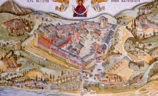 Terminé mi última crónica a las puertas del monasterio ortodoxo de Vatopedi, donde había sido acogido, previa petición, para pasar una sola noche. En pensión completa, eso sí. El protocolo de cortesía monástica impone recibir a todo peregrino con un vaso de agua, unas pastas y un dedal de raquía, el aromático aguardiente local. Tras el ritual, me asignaron una habitación amplia y luminosa con tres camas, asomada a las azules aguas del Egeo. El cuarto de baño estaba al otro lado del distribuidor, siempre limpio y dispuesto. Enseguida apareció el padre Gregorio para hacerme saber en buen inglés que muy pronto se celebrarían Vísperas en la iglesia y se esperaba mi presencia. Curioseando por el patio, di con una inscripción en catalán agradeciendo los donativos ofrecidos por la Generalitat de Cataluña para la reconstrucción del edificio. ¿Sería como compensación por el saqueo que llevaron a cabo mercenarios catalanes en el siglo XIV?