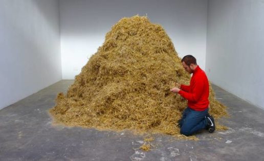 El sujeto lleva dos días buscando este objeto en una pila de heno que esta ubicada en el interior de la galería de arte Palais de Tokio, en París.