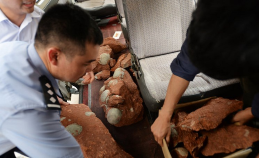 Los 43 fósiles de huevos de dinosaurios fueron encontrados en un sitio en construcción en el sur de China.