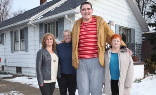 Pese a su edad, sigue creciendo unos 15 cm cada año. Su altura se debe a un desorden genético diagnosticado cuando tenía 5 años llamado Síndrome de Sotos o Gigantismo Cerebral.