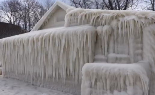 Una casa quedó completamente congelada a orillas del Lago Ontario, en el estado de Nueva York, Estados Unidos.