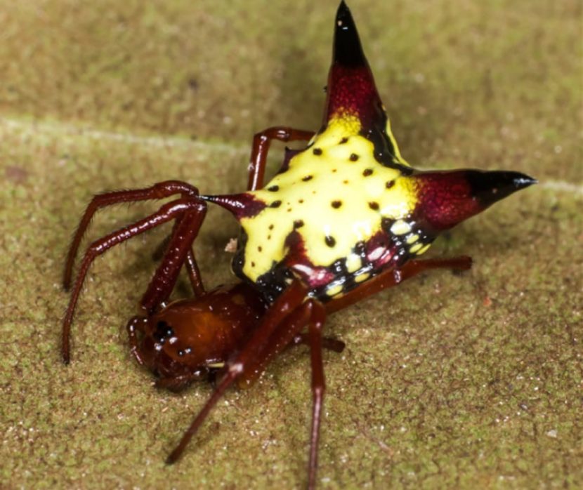 Se trata de la Micrathena Sagittata una especie de araña la cual tiene un abdomen en forma de flecha que le brinda un mecanismo de defensa.