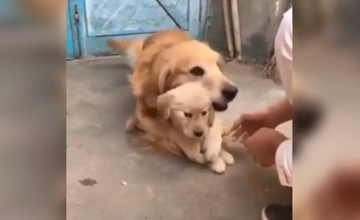 Adi, una Golden Retriever se hizo viral en Facebook, después de publicarse un vídeo donde aparece el animal mostrando su lado protector.