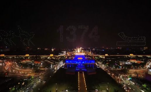 1.374 drones iluminaron el cielo durante 13 minutos, estableciendo un nuevo récord Guinness por “el mayor número de vehículos aéreos no tripulados volando de manera simultánea”.