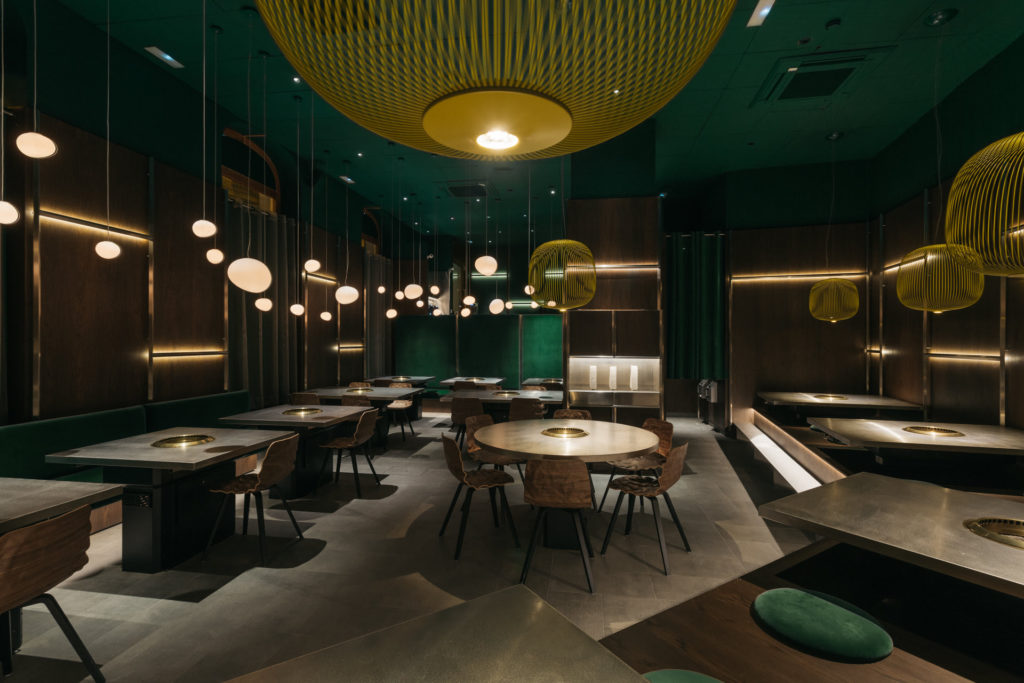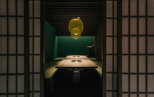 Las luces son importantes, desde un chandelier flotante preside el salón principal asà como una serie de lámparas inspiradas en las tradicionales linternas japonesas dispuestas encima de cada mesa. Para conseguir que la experiencia sea única en cada visita se han creado diferentes tipologÃas de asientos. Desde mesa tradicional y tatamis, hasta mesas con foso para entrar descalzos que nos hace pensar que nos encontramos en el corazón de la ruidosa ciudad.