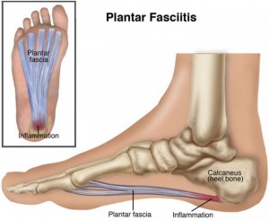 Produce dolor en el talón o en la zona media de la planta del pie, siendo el dolor más agudo al dar los primeros pasos después de levantarse de la cama por la mañana, o después de un largo periodo de reposo. El dolor también es más intenso después del ejercicio o actividad deportiva, pero aquà un dato curioso, no mientras se realiza.