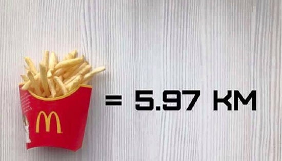 –       Patatas fritas medianas de menú = 6 km (aprox.)