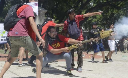 El gentÃo llegó y tomo por más de 8 horas la plaza de los dos Congreso. Martillos de obras en mano levantó las baldosas que utilizarÃan después como proyectiles junto con piedras o carbones ardiendo de fogatas. Algunas de estas le llovieron al periodista Julio Bazán que tuvo que salir a la carrera entre patadas por la espalda y huir en el metro.