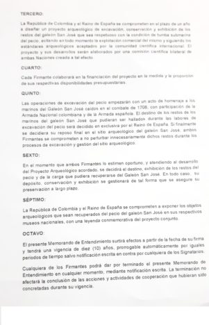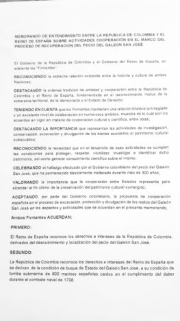 En opinión de este especialista, crítico con algunos términos del Memorando, «el lenguaje de los cazatesoros y especialmente sus ecuaciones jurídicas, relacionadas con el derecho de hallazgo y de salvamento que son las que les sirven para funcionar por todo el mundo acabarían plasmadas en un documento que firmaría España sellando no solo el futuro del galeón San José sino condicionando todo nuestro legado sumergido en aguas americanas».