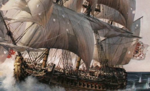 De nuevo embarcado en la gran historia naval española, apenas dos meses después de presentar el cuadro «El último combate del Glorioso» en el Museo Naval de Madrid, el pintor de batallas, Augusto Ferrer-Dalmau, ha vuelto a abordar la épica travesía que este navío de 70 cañones protagonizó en el verano de 1747, y aquí recordaba el historiador Agustín Rodríguez. Recordémoslo: el buque logró cumplir su misión y desembarcó los caudales que transportaba desde América en Corcubión, después de superar el ataque de dos escuadras inglesas superiores en cañones y tropa. Y solo cayó, agotada la pólvora y desarbolado, en un tercer combate, mantenido durante dos días de manera feroz cerca del Cabo de San Vicente, cuando se dirigía a repararse a Cádiz, ante una flotilla abrumadoramente superior que le dio caza.