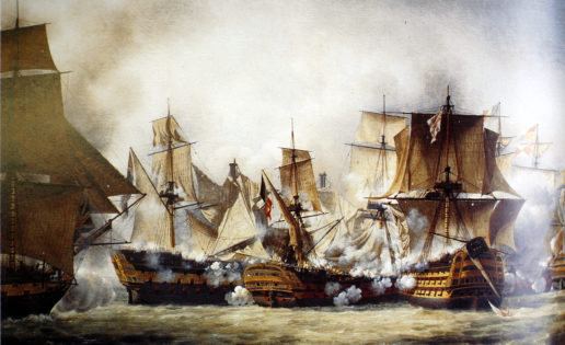 Tras el avistamiento, y las maniobras tácticas, nos encontramos con un destino.Uno forjado previamente por aquellos marinos, por aquellos protagonistas. Uno por la decisión de Nelson, previamente comunicado a su capitanes de mar y de guerra, mediante un poderoso brindis, en la conjura por la victoria en su propio cabina. De otro lado. La orden de Villeneuve de virar hacia el noreste para poner rumbo a Cádiz,  en cuanto vio aquella columna de a dos, venir a todo trapo hacia su frágil y extensa media luna. El cuerpo español no estaba de acuerdo.  Que lejos del “esprit de corps” de los Hardy, Collingwood, Harvey, Duff y Berry. Célebre el desacuerdo con el pusilánime Villeneuve, de los valientes y experimentados Churruca y Alcalá Galiano. Para cuando conocerán su noble historia el ciudadano en general. Como revindicaba hace unas horas acertadamente en twitter una gaditana, arqueóloga e historia naval que entraba en conversación con un tweet del  Maritime Museum y de un servidor, en el dÃa de la conmemoración de Trafalgar. “Hoy también murió en combate el comandante y paisano mÃo, Churruca. Su viuda nunca recibió las pagas”. Cuanta razón evocaba. Mientras unos brindaban en torno a una mesa la noche anterior, otros que pegaban un sonoro puñetazo de contrariedad en el consejo de guerra celebrado en el puerto de Cádiz, contrariando las mediocres órdenes del almirante francés por parte de los capitanes de mar españoles. Hay batallas que parecen decidirse antes de enfrentamiento y que parecen ser muy actuales. Y posiblemente Trafalgar fuese una de estas. El audaz e inteligente Churruca, del que antes hablábamos, mientras leÃa las señales con el anteojo en la cubierta de su navÃo, lo dejó bien claro: «el almirante no sabe lo que hace, la flota está perdida». Se le tuvo que caer el mundo encima. Y a pesar de eso lucharon. Y pasaron a la historia.