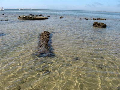 En 2009 y 2010, con el apoyo del Ayuntamiento y de la Marina Costera de Olhão, en el marco de actividades estivales, llevamos a grupos de jóvenes a visitar el sitio, en la marea baja. Un día, uno de ellos, empezó a caminar muy pensativo entre las piedras, los cañones y la arena mojada y le pregunté: ¿Por qué estas caminando así?