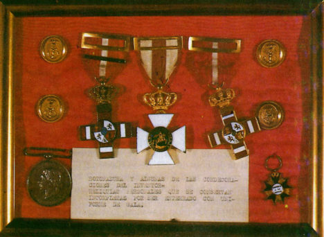 Condecoraciones, sable y charreteras de Peral.
