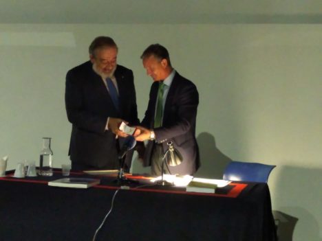 Y coincidiendo con el 130 aniversario de la botadura de su submarino, tuvimos la satisfacción de presentar la tercera edición, ampliada y mejorada, de nuestro trabajo sobre su vida y obra, premiado ya en su primera edición por la Armada con el “Virgen del Carmen” para libros, justamente en el Museo Naval de Cartagena y al lado del prototipo del sumergible. Presentó el libro el Capitán de Navío Alejandro Cuerda Lorenzo, jefe del Arma Submarina de la Armada Española, que tuvo la deferencia de entregarnos el diploma que nos acredita como “Submarinista de Honor” y el distintivo del Arma.