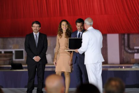 Así lo señaló la propia ministra, que se confesó emocionada y orgullosa al término de la entrega de premios. De sus manos recogió el alcalde de Rota, José Javier Ruiz Arana, la distinción que la Armada entregó al Ayuntamiento de la localidad gaditana en reconocimiento a la larga y fructífera relación entre ambas instituciones y el entusiasta apoyo durante los preparativos y desarrollo de los actos conmemorativos del Centenario de la Aviación Naval.