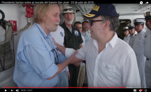 1.- El galeón debe ser excavado con urgencia. Nadie ha explicado que es falso que ese yacimiento esté en riesgo de destrucción. Santos sabe que eso no es cierto. Y su coartada científica, el presidente del ICAHN, Ernesto Montenegro, también lo sabe. Montenegro ha demostrado una elástica capacidad para estirar su titulación curricular para alcanzar el puesto en el que Santos le nombró como el mayor experto colombiano en la materia (otra falsedad, perfectamente demostrada) y por eso se explica que asumiera de manera combativa el encargo de sus jefes políticos a pesar de que es diametralmente contrario a la ética científica, como demuestra la posición de la Academia colombiana, la Unesco y las voces de los más reputados científicos del mundo. Excavar en 6 meses el San José es un crimen. La prisa por comenzar era parte del acuerdo, según la ministra de Cultura, Mariana Garcés, dejó firmado en un acta de la Comisión de Patrimonio.