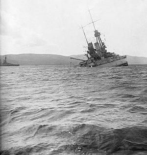 En torno a las 10:00 de la mañana del 21 de junio de 1919, desde su nave capitana, von Reuter envió mediante banderas la señal por la cual ordenaba a la flota estar alerta ante la orden de echar a pique. En torno a las 11:20 se envió la orden mediante banderas: “A todos los oficiales al mando y lÃderes de los buques torpederos. Párrafo 11 de la fecha de hoy. Acuse recibo. Jefe de la escuadra internada”.La señal fue repetida mediante semáforos y reflectores. Llegaron a todos los barcos fondeados, uno a uno. El hundimiento comenzó inmediatamente: se abrieron los grifos de fondo y tomas de agua, y se procedió a romper las tuberÃas internas de agua.Los ojos de buey habÃan sido aflojados previamente, las puertas estancas se habÃan dejado abiertas, asà como las cubiertas de los condensadores. Para acelerar su hundimiento, en algunos buques se realizaron  agujeros a través de los mamparos para permitir que el agua circulara una vez que esta entrará dentro de los buques. No hubo efectos visibles hasta el mediodÃa, cuando el Friedrich der Grosse comenzó a tener una fuerte escora a estribor y los buques de la armada imperial izaron en sus mástiles la bandera imperial. Las tripulaciones comenzaron a abandonar sus buques en aquel dÃa brillante de junio, en aquella base tan distante y alejada de su patria. En aquella fortaleza marina del mar del Norte. Temiendo que los buques fueran repartidos entre las potencias aliadas, el comandante alemán, almirante Ludwig von Reuter, decidió hundir su flota. Y lo consiguió…