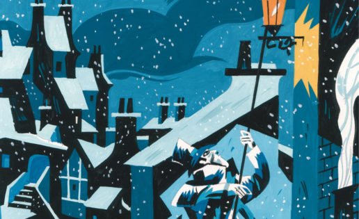 Pero ¿quién “inventó” la Navidad que realmente conocemos en la actualidad? ¿Dickens? Según algunas fuentes literarias parece que fue así. A través de su prosa poética cargada de un simbolismo y un realismo comprometido con lo social, creó los más que conocidos, representados y adaptados “Cuentos de navidad”. En estas fechas han salido diferentes ediciones y reediciones en el panorama editorial español, pero hay una que creo ha marcado un poco más la diferencia, la realizada desde el Grupo Random House en España y su “Cuentos de navidad”. Una reedición ilustrada por el gran dibujante español y Premio Nacional de Cómic, Javier Olivares, en la que aporta con sus representaciones (realizadas en 2012) de corte expresionista e incluso casi cubista, una visión diferente de estos clásicos de la literatura universal. En una edición muy cuidada las once ilustraciones de las que consta el volumen, están impresas en un papel diferente al resto de la obra creando así una diferenciación elegante con un papel brillo que realza y da una fuerza y viveza a unos magníficos dibujos que representan con tonos fríos esa atmósfera dickensiana que realzan los sentimientos de optimismo, alegría, calidez y vida, aunque también transmite esos elementos característicos de Dickens en los que predominan la oscuridad, la desesperanza, la frialdad, la tristeza e incluso la muerte.