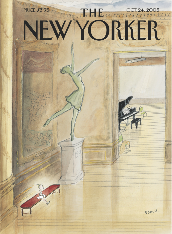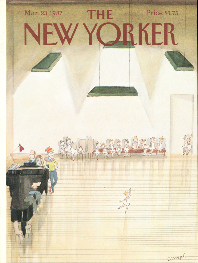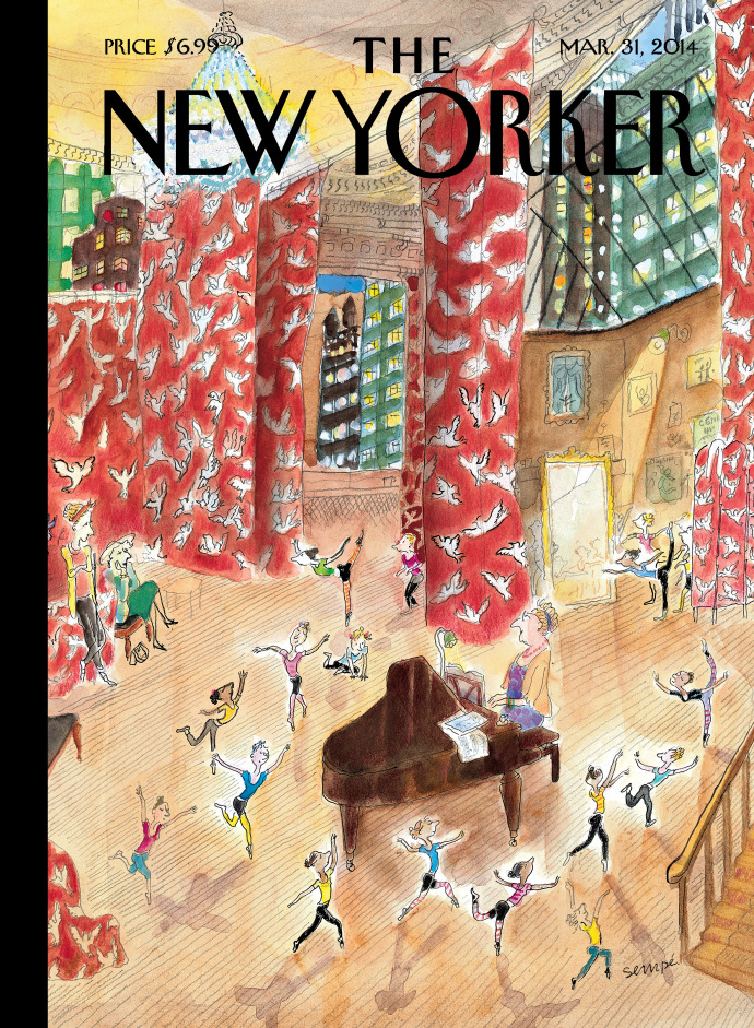 Su serie para The New Yorker de “Danza alrededor de un piano”, muestra ese dibujo que recuerda a Catherine, la pequeña niña que quiere ser bailarina pero que se tiene que quitar sus gafas para conseguirlo.