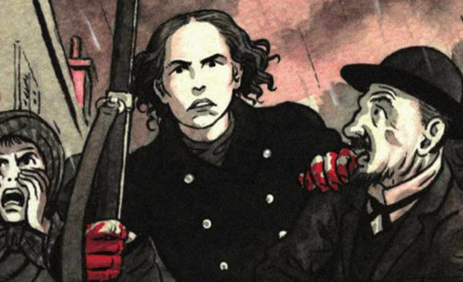 Tras el éxito de Sufragista (La Cúpula), Mary M. Talbot y Bryan Talbot, adalides de un tipo de novela gráfica de carácter histórico y político hacen que “La virgen roja” se convierta en una obra indispensable en su categoría y para todo aquel amante del buen dibujo y de historias bien contadas. Los autores nos sumergen con guiños históricos de una época de forma sutil y bien pensada, que complementan una obra enriqueciéndola históricamente y convirtiendo el caso, por ejemplo, de Franz Reichelt, un inventro que ideó siguiendo los diseños de Leonardo da Vinci y de algunos intentos fallidos anteriores, una especie de paracaídas para intentar salvar la vida de aquellos pilotos de aviones que durante el vuelo fueran tocados por el enemigo y que les permitieran saltar desde un lugar alto, descendiendo suavemente a tierra. Pero el invento al ser muy rudimentario tuvo un final catastrófico, probando él mismo su invento desde una altura considerable de la Torre Effiel. Además, un equipo de filmación estaba preparado para registrar el acontecimiento. Reichelt, desde lo alto saltó y cayó de forma violenta, dejando un considerable agujero en el suelo. El invento de Reichelt es una clara metáfora de un sentimiento y una forma de pensar en la Comuna de París que llevó a pagar un alto precio a aquellos que intentaron aplicar sus ideas en una época convulsa, eso si, sentando las bases para un futuro que vendría mucho más turbulento.