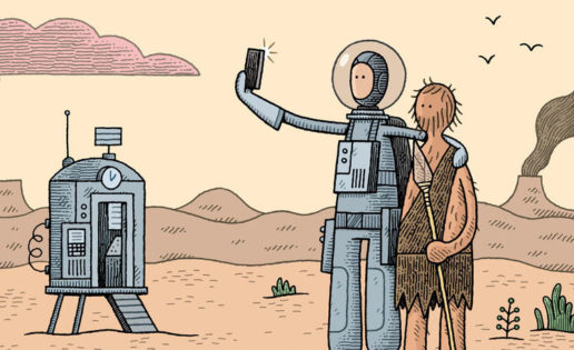 Una de las claves de sus tiras y que las convierte en geniales y únicas -además de su gran dibujo- es aplicar la tecnología moderna a historias más tradicionales. Un truco que usa para tratar de encontrar formas interesantes y divertidas de mirar los temas. Gauld pone algo actual junto con algo del pasado o del futuro, lo que se convierte en una imagen que provoca la sonrisa asegurada del lector, pero ocasionalmente esta técnica arroja comparaciones más reflexivas. En sus dibujos podemos leer entre líneas una crítica a las personas (a veces a los dibujantes satíricos más viejos) que sugieren que en el pasado todos empleabamos nuestro tiempo leyendo buena literatura, pero hoy los jóvenes no hacen más que jugar al Candy Crush, algo que no tiene mucho sentido.