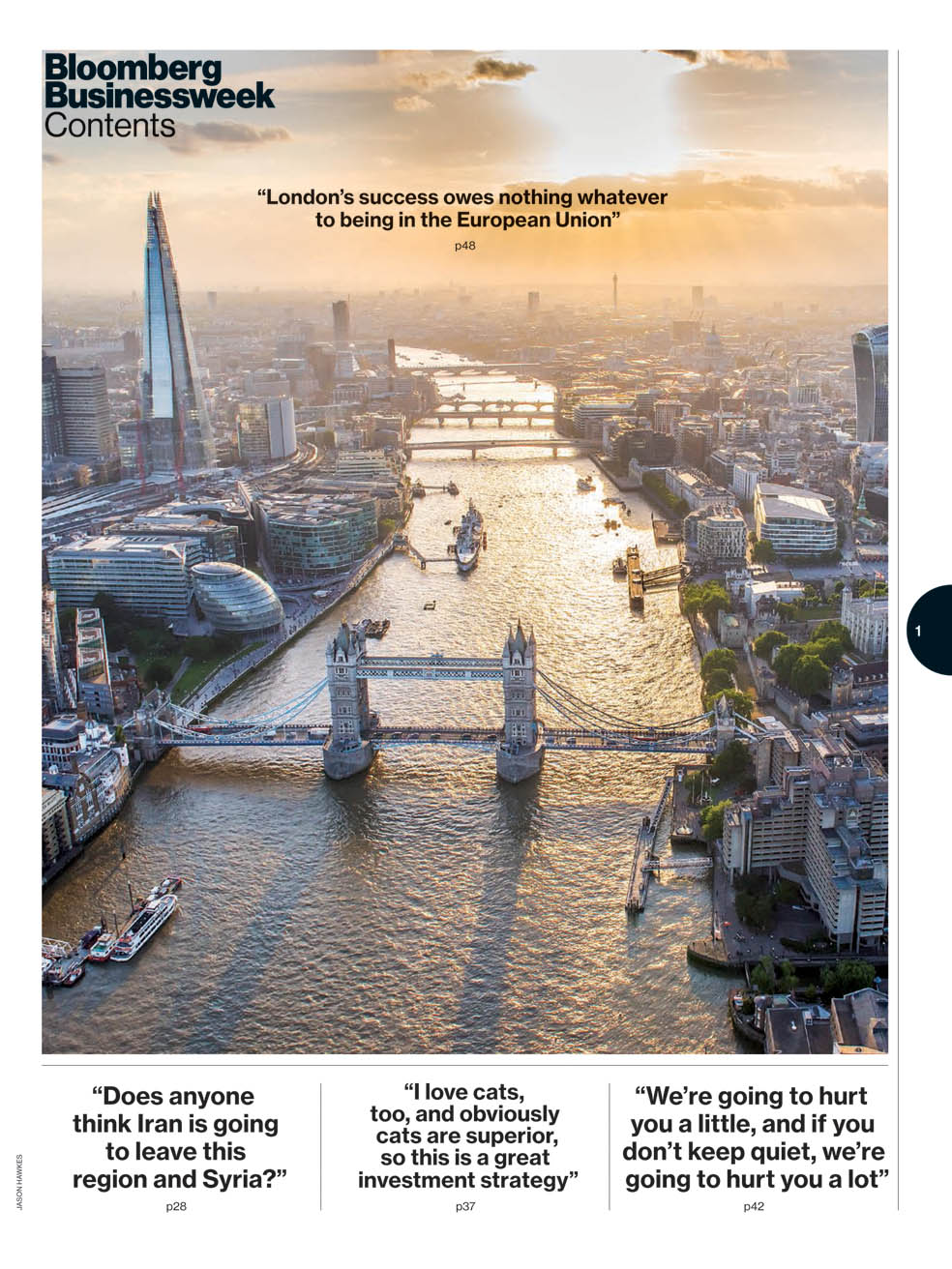 Su editora Megan Murphy comenta que “se ve esto reflejado con un diseño más funcional, limpio, consistente y más rico en gráficos y fotografía. La nueva Bloomberg Businessweek es más global. Hemos renovado nuestras secciones para que pueda encontrar el lector más fácilmente las historias que le contamos: negocios, finanzas, tecnología, economía y política. En la parte final de la revista, hemos introducido la sección nueva Pursuits, con consejos sobre viajes, comida, arte y mucho más”.