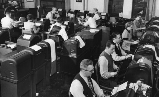 «Pasadas las ocho de la tarde, las ventanas empezaron a vibrar (…) Una regla que sobresalía un poco del escritorio del viejo Eddy Moulton se fue desplazando de lado, muy despacio, hasta perder el equilibrio y caer al suelo. Las rotativas del sótano se habían puesto en marcha para la primera edición».