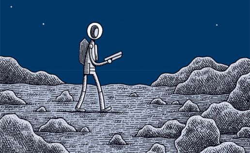 Pero, ya hay alguien que ha materializado esa vida en la luna adelantándose al director de la Agencia Espacial Europea (ESA), Jan Woerner, en su deseo de construir una base en la Luna en colaboración con todos los países que trabajan en el espacio. Un macroproyecto internacional que sustituiría a la La Estación Espacial Internacional ISS cuando ésta deje de utilizarse, en la próxima década. Tom Gauld (1976) -sin recurrir a impresoras 3D- ya ha colonizado la Luna. A través del papel en el que plasma sus dibujos característicos y diferenciadores, nos muestra la peculiaridad de una colonia lunar -desde los tonos azulados muy evocadores de la carrera espacial- de estar asentada ya hace varios años y que ahora está en decadencia como uno de esos pueblos en los que ha dejado de pasar la carretera principal y su población se reduce día tras día. Y como toda población humana, ha necesitado tener una autoridad que vele por la seguridad de sus habitantes, un poli. En este caso un solitario que realiza las rondas por tierras lunares. “Un policía en la luna” (Salamandra Graphic) no tiene prácticamente trabajo, y por lo tanto, son escasos los asuntos por resolver, y sobre todo menos emocionantes: una chica que huye de casa, una anciana que pierde su perro, un autómata que se escapa del Museo de la Luna…