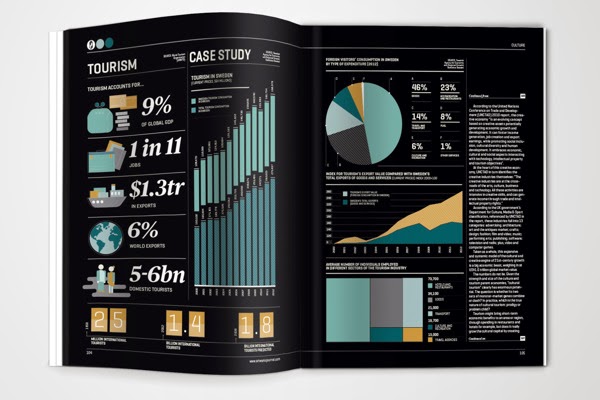 Sus trabajos se caracterizan por una limpieza y elegancia en la edición gráfica que es muy potente, así como la utilización de una viva paleta de colores para sus infografías.