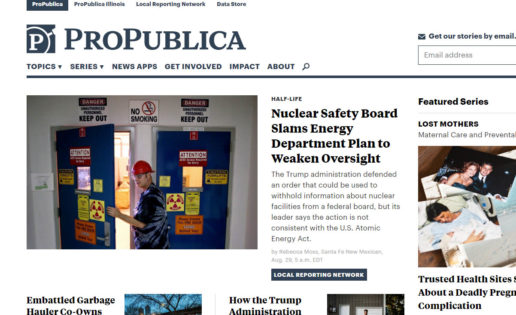Es probable que nos encontremos ante uno de los momentos más importantes de la historia del periodismo independiente. En un clima en el que las falsedades tomadas como verdad, el ambiente enrarecido establecido en Estados Unidos por su presidente, con esos ataques constantes a la prensa, en España con la acreditación de bulos que algunos medios transmiten a la sociedad sin contrastar, y en el que las opiniones se han polarizado hasta límites insospechados. Existen medios -por suerte-, que sin un ánimo de lucro establecido, están empezando a desempeñar un papel vital y necesario para mostrar informaciones. Como ocurre desde la ciudad de Nueva York con ProPublica. Un medio online galardonado con varios premios Pulitzer que tiene la misión de mostrar los abusos de poder y las traiciones a la confianza pública por parte del gobierno -de Estados Unidos-, las empresas y otras instituciones, utilizando la fuerza moral del periodismo de investigación para impulsar la reforma a través de la atención sostenida de la maldad.