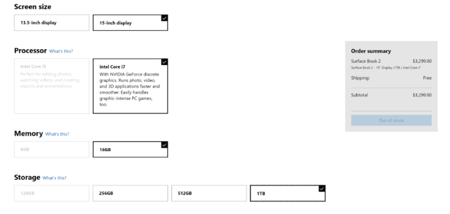 La diferencia de potencia entre el Surface Book de 13 pulgadas comparado con el de 15 pulgadas es muy notoria, llegando en los análisis al doble de velocidad para taresas gráficas, como juegos o aplicaciones 3D. La diferencia de precio entre uno y otro, es de unos escasos cientos de euros, por lo que hace el Surface Book de 15 pulgadas resulte mucho más interesante que el de 13 pulgadas, algo que ha hecho que Estados Unidos lleve semanas agotado. No hay ningún problema para adquirir un Surface Book 2 de 13 pulgadas, pero los de 15 es prácticamente una tarea imposible, y las listas de espera son de varias semanas.