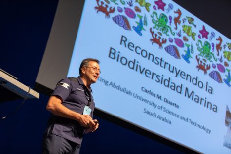 De las ponencias del lunes me quedo con las visiones positivas del secretario general de Cepesca, Javier Garat, y del científico Carlos Duarte sobre los indicios de recuperación de la diversidad marina gracias a las medidas que han empezado a adoptarse en los últimos años. Y con las ponencias de dos cocineros, Javier Olleros (Culler de Pau) y Ángel León (Aponiente). Muy bien el gallego, pero el gaditano fue el protagonista absoluto.